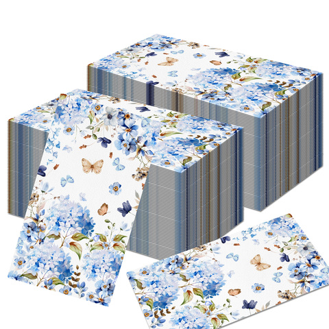 مناديل Huancai 20 ، زرقاء صفراء ، زرقاء ، أزهار ، مناشف يدوية للاستخدام مرة واحدة للزفاف ، مستلزمات حفلات أعياد الميلاد