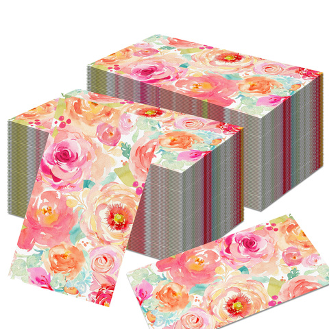 مناديل Huancai بالألوان المائية الوردية ، ورق زهري للاستعمال مرة واحدة للضيوف ، مناشف يدوية للاستعمال في المستلزمات