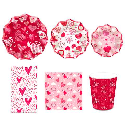 MU002 sevgililer günü dalga plaka kağıt sofra seti kağıt tabaklar peçeteler bardaklar çatal aşk kalp tema parti için