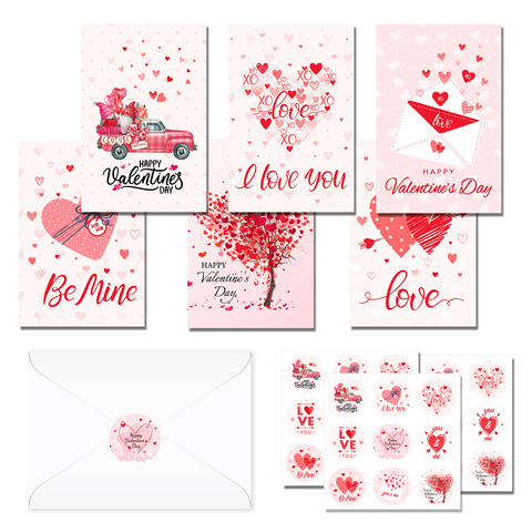 Huancai 24 Packs sevgililer günü tebrik kartları ile zarflar tatlı kalp aşk çıkartmaları sevgililer parti malzemeleri için 6 tasarımlar