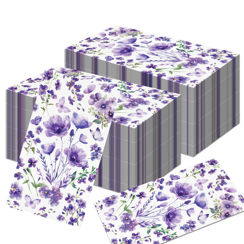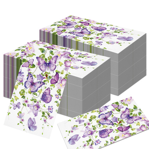 Guardanapos de Papel Descartáveis Huancai Borboleta Roxa com Estampa Floral para Jantar, Guardanapos de Papel para Banheiro e Toalhas de Mão para Festas de Casamento