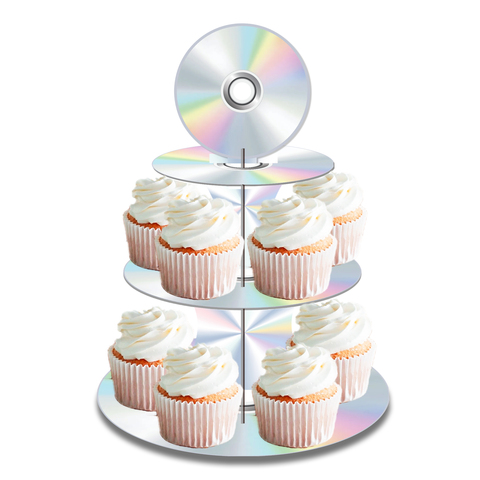 Подставка для кексов DT151 в стиле ретро 3-ярусная Переливающаяся подставка для кексов CD для музыкальных принадлежностей 90-х
