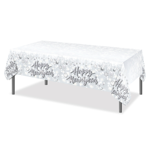 ผ้าปูโต๊ะ PE แบบใช้แล้วทิ้งลายเกล็ดหิมะสีเงิน ZB272สำหรับงานเลี้ยงปีใหม่