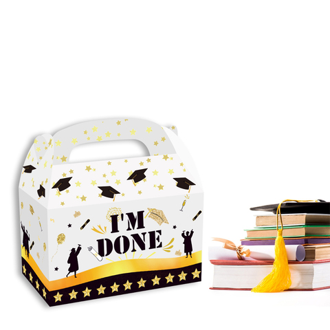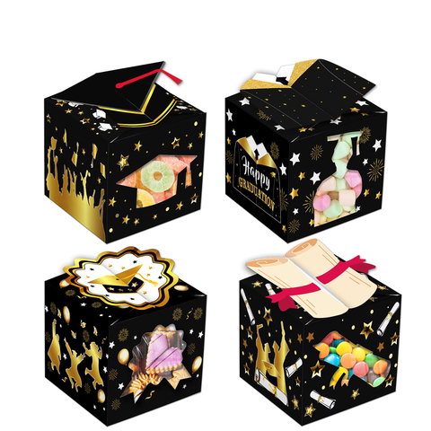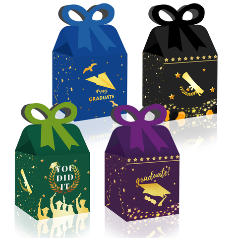 กล่องของขวัญบรรจุภัณฑ์ลูกกวาดพร้อมที่จับกระดาษรูปโบว์สำหรับปาร์ตี้รับปริญญามีความสุขใน KZ051