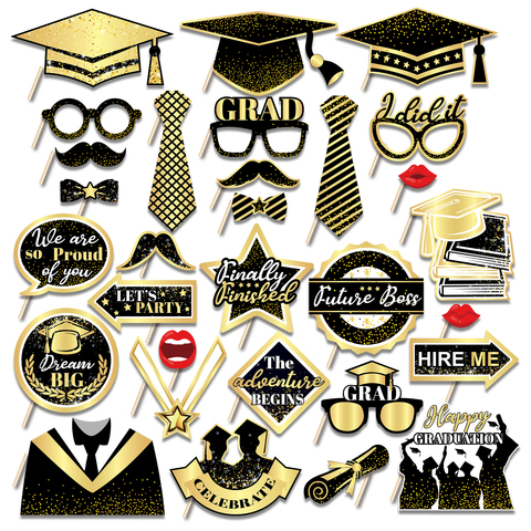 อุปกรณ์ตกแต่งบูธกระดาษสีดำและทอง25ชิ้นอุปกรณ์ตกแต่งงานเลี้ยงรับปริญญา PZ280
